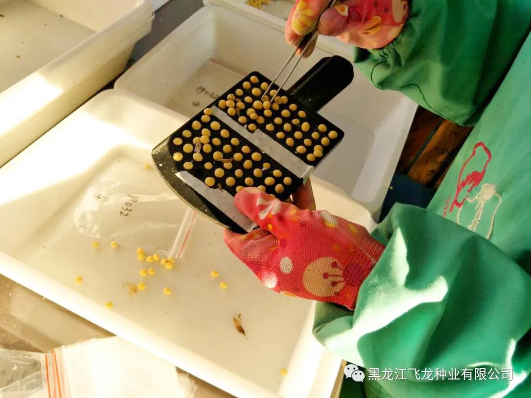今年飛龍種業(yè)科研雜交圃面積1畝,雜交組合100個。三月初將雜交圃所需的種子根據(jù)育種計劃進(jìn)行分包,篩選具有良好品質(zhì)的種子,將病粒、蟲蛀粒、小粒、秕粒和破瓣粒揀出,保證出芽率。