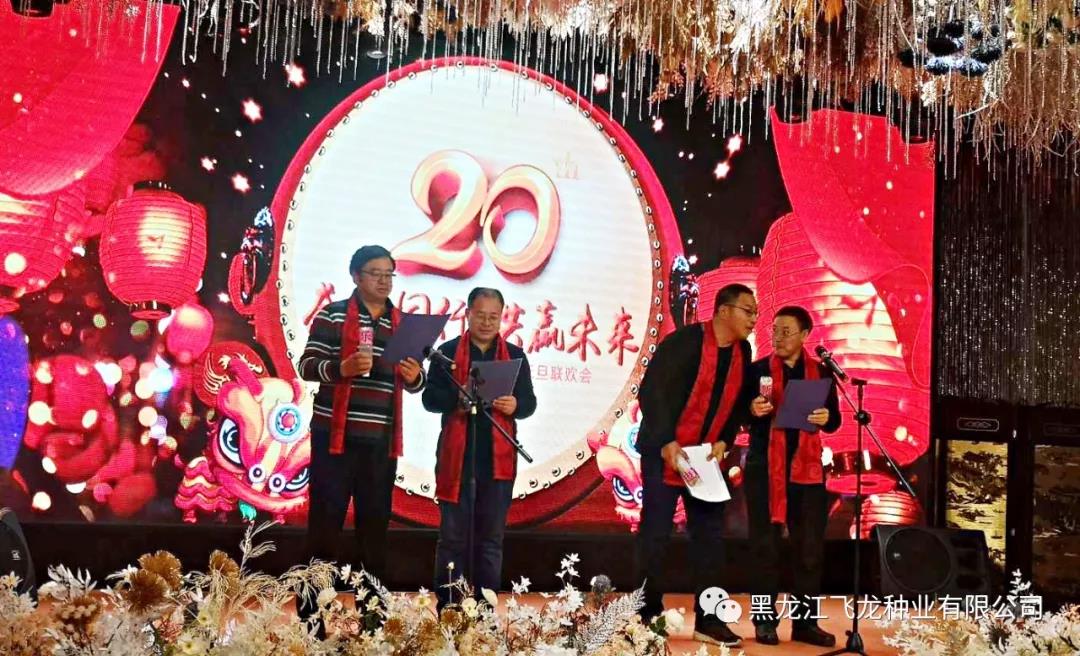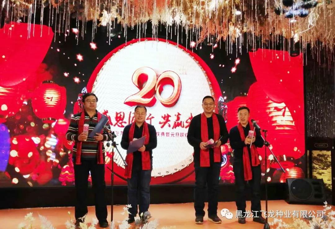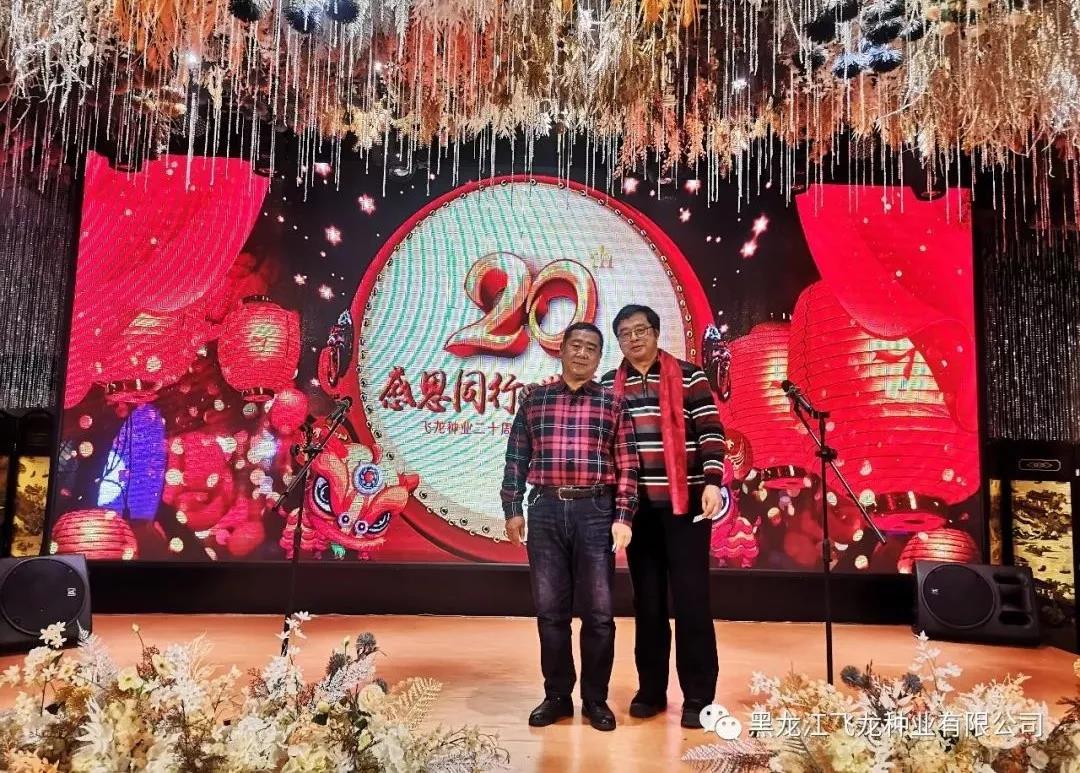風(fēng)雨砥礪,歲月如歌,2020年1月1日,黑龍江飛龍種業(yè)有限公司20周年慶典暨元旦聯(lián)歡會(huì)圓滿舉行,全體飛龍人與各科研院所專家、以及來(lái)自各地的七十多位種地大戶歡聚一堂,共度佳節(jié)。其中到場(chǎng)的嘉賓分別有:飛龍種業(yè)首席大豆育種專家杜維廣研究員(左6)、牡丹江農(nóng)科院任海祥院長(zhǎng)(右4)、農(nóng)墾科學(xué)院大豆所王德亮主任一行(左4)。