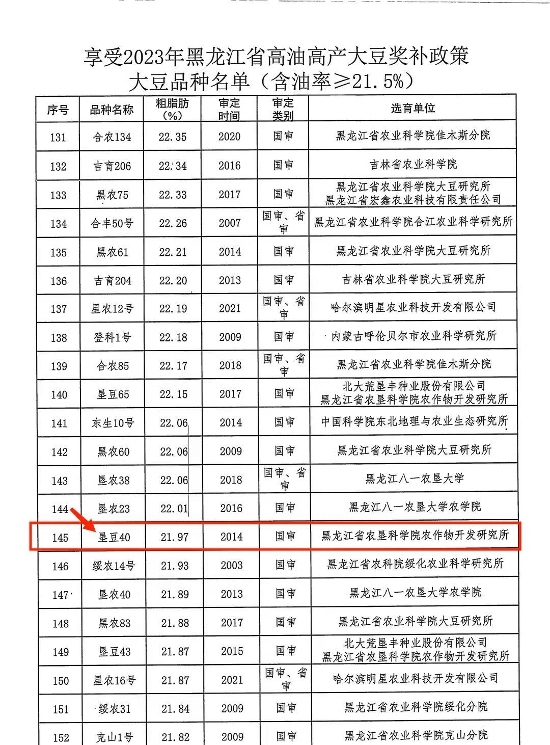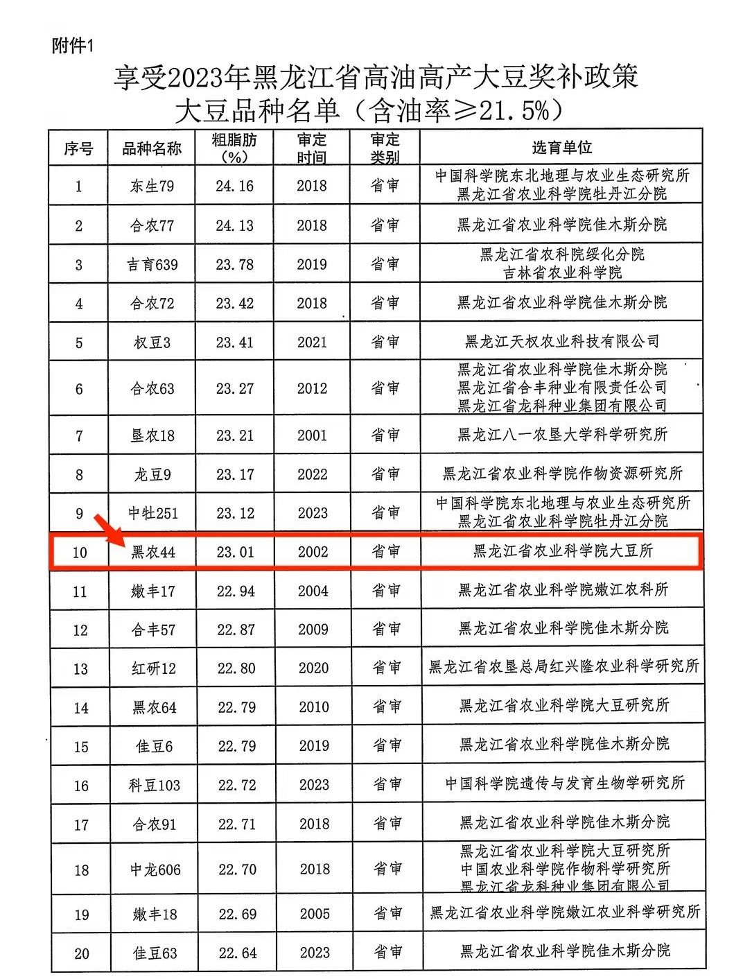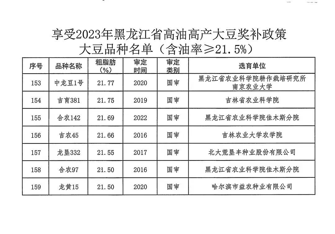 附件:1.享受2023年黑龍江省高油高產(chǎn)大豆獎補(bǔ)政策大豆品種名單(含油率≥21.5%)